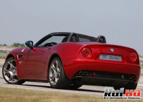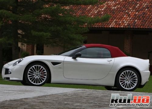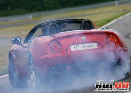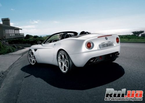 В элегантных дутых формах кузова, Alfa Romeo 8С Spider, угадывается модель Giulia TZ 1963 года. В схожем стиле выполнены и огромные овальные передние фары. На фоне небольших размеров особенно выделяются огромные 20-дюймовые диски, напоминающие барабан телефона. Дань классике – и треугольные отверстия в передних крыльях. Сзади эффектно смотрятся большие круглые красные фонари, а из бампера выглядывают четыре хромированных наконечника выхлопных труб.