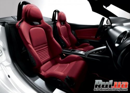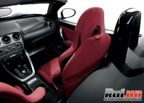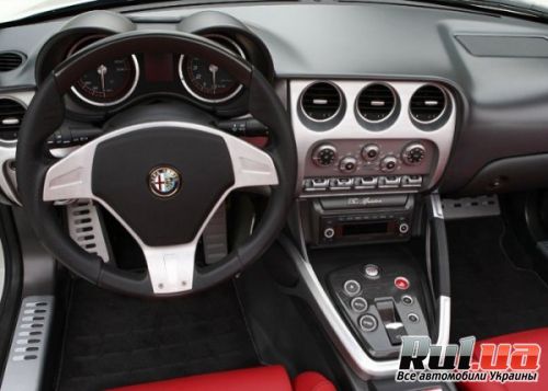 В салоне Alfa Romeo 8С Spider, также присутствует настоящий голый карбон, что прибавляет ему спортивного колорита. Из карбона изготовили и трехспицевое рулевое колесо, а обшили его перфорированной кожей. Центральная консоль покрыта серебристым полированным алюминием. Переключатели на ней напоминают тумблеры в кабине самолета. Их подсветка – ярко-красная.